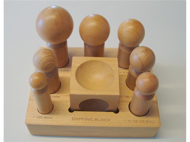 Knopstempelsett; Anke med 7 knopstemel i str. 25,4 , 32,5 , 37,5 , 40,5 , 45,0 , 50,8 ,og 63,5 mm.
