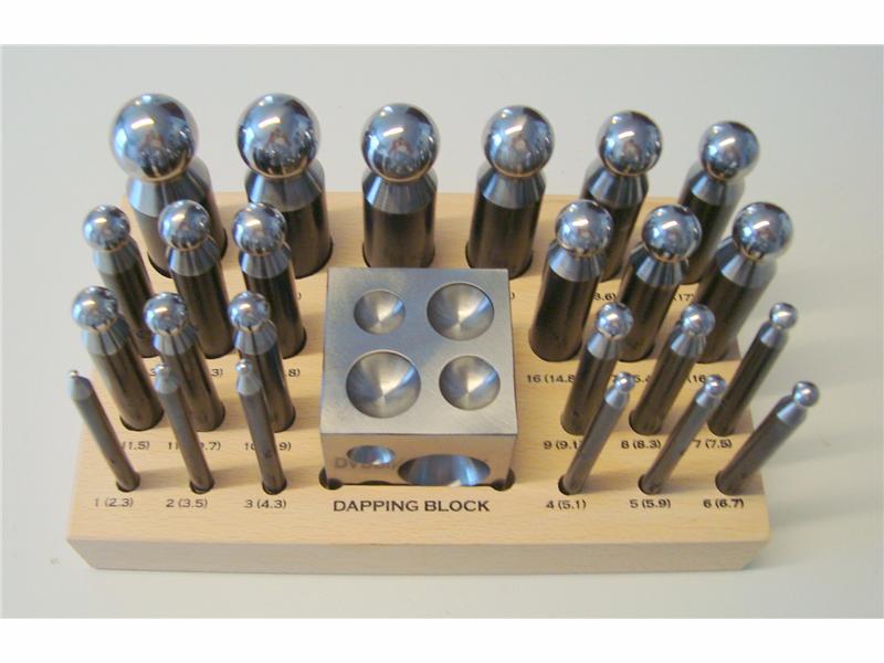 Knopstempelsett,anke med knopstempel i flg. str. 2,3 , 2,5 , 4,3 , 5,1 , 5,9 , 6,7 , 7,5 , 8,3 , 9,1 , 9,9 , 10,7 , 11,5 , 12,3 , 13,0 , 13,8 , 14,8 , 15,4 , 16,2 , 17,0 , 18,6 , 20,2 , 21,8 , 23,4 , 25,0 mm.