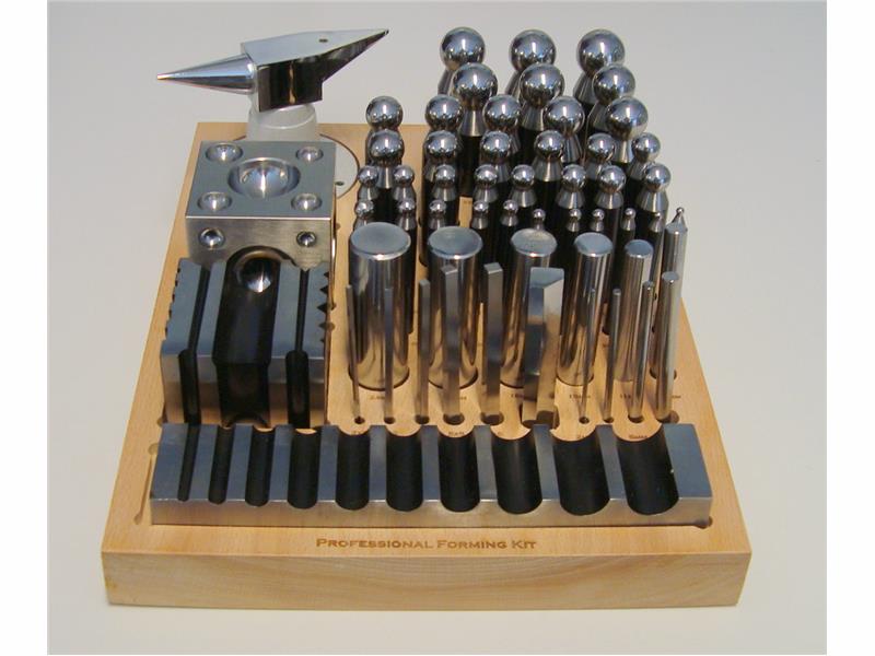 2 rilleanker med runde stempel i str. 2, 3,5,7,10,11,15,18,21 og 25 mm Firkantstempler i str. 2×2, 3×3, 4×4,5×5 og 6x6mm og et stempel for 45 grader.