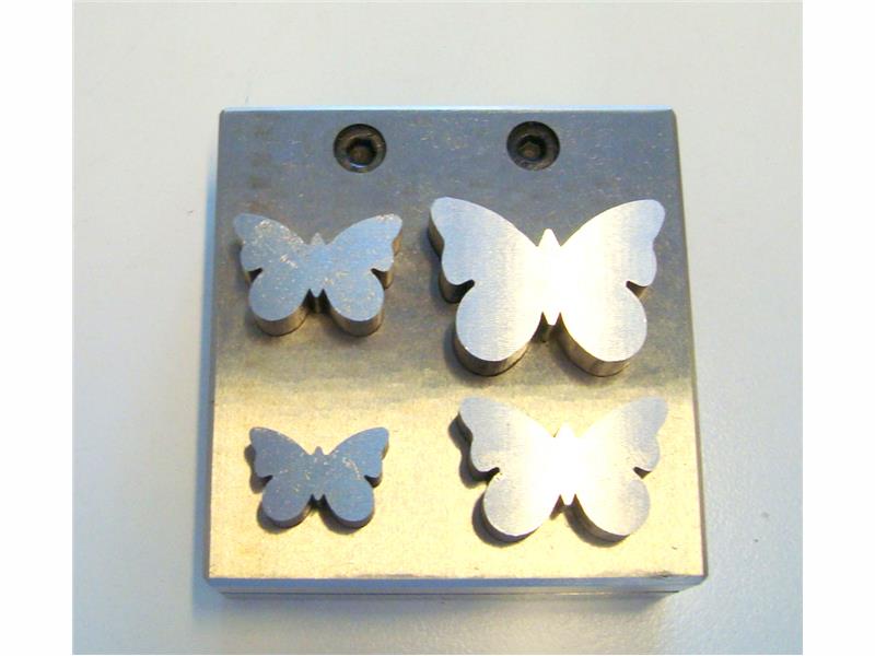 Art. 110876 Uthuggersett sommerfugl. 4 uthuggere i str. 20x14mm , 25x17mm , 30x20mm. og 35x24mm.Max.anbefalt platetykkelse er 0,7mm. antall