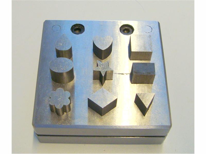Settet har følgende uthuggere: dråpe 9,8 x 12,5 mm , Hjerte 10,5 x 11,8mm , firkant 12,7 x 12,7mm , rektangel 12,7 x 8 mm. trekant 10x10x10mm . rute 15,8 x 12,5 mm. stjerne 11mm. ¨blomst¨12,5mm . oval 13,6 x 10mm.