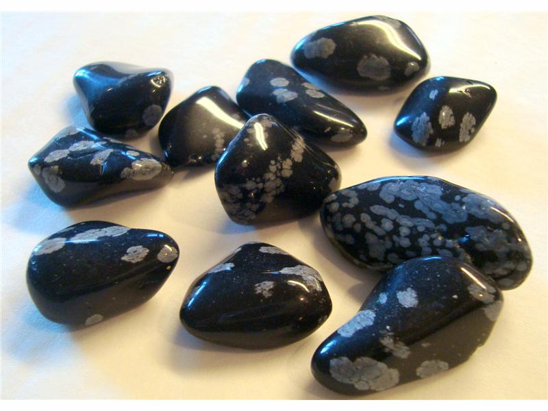 Art. 3503 Snøfnugg obsidian, tromlet. Størrelse på steinene 2-2,5 cm. Steinene er uten hull. Pose med 250 gram antall