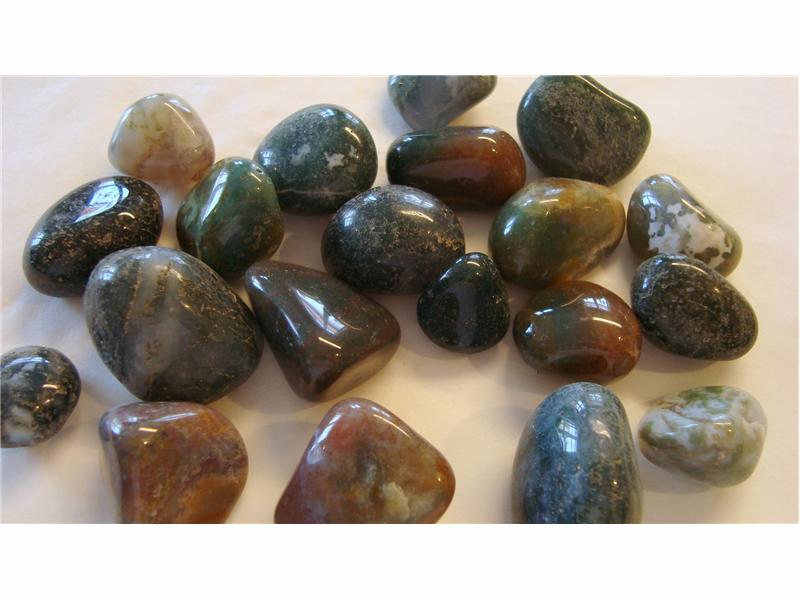 Art. 3507 Moseagat , tromlet. Størrelse på steinene 1-3 cm. Steinene er uten hull. Pose med 250 gram.