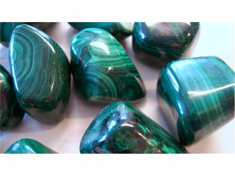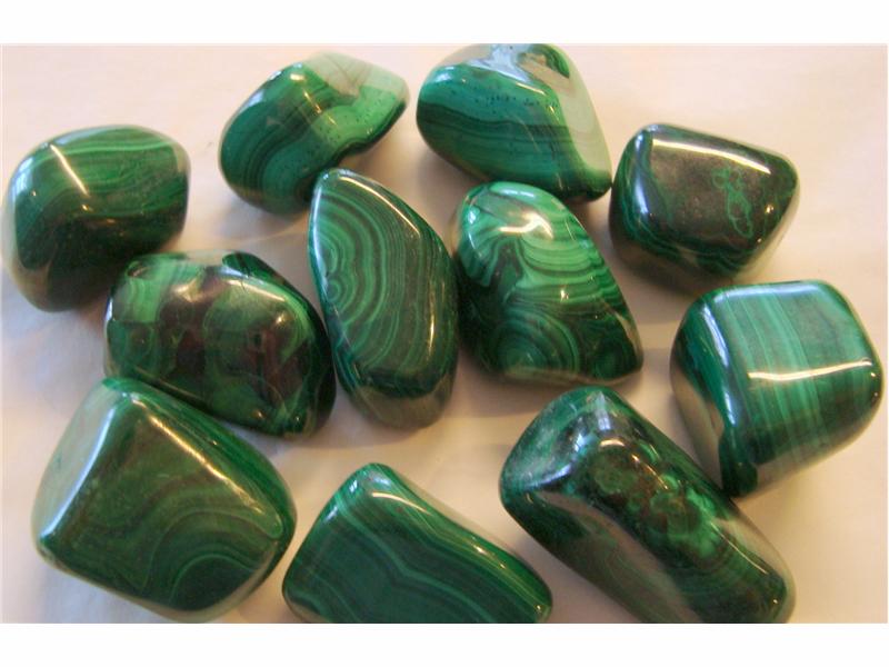 Art. 3546 Malakitt, tromlet. Størrelse på steinene 3-4 cm. Steinene er uten hull. Pris er oppgitt pr. stein.