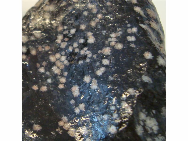 Obsidian snefnugg fra USA, Farge sort med hvitaktige ¨snøfnugg¨ Størrelse på bitene 100 gr. – 1 kg. Prisen er oppgitt pr. 100 gram.