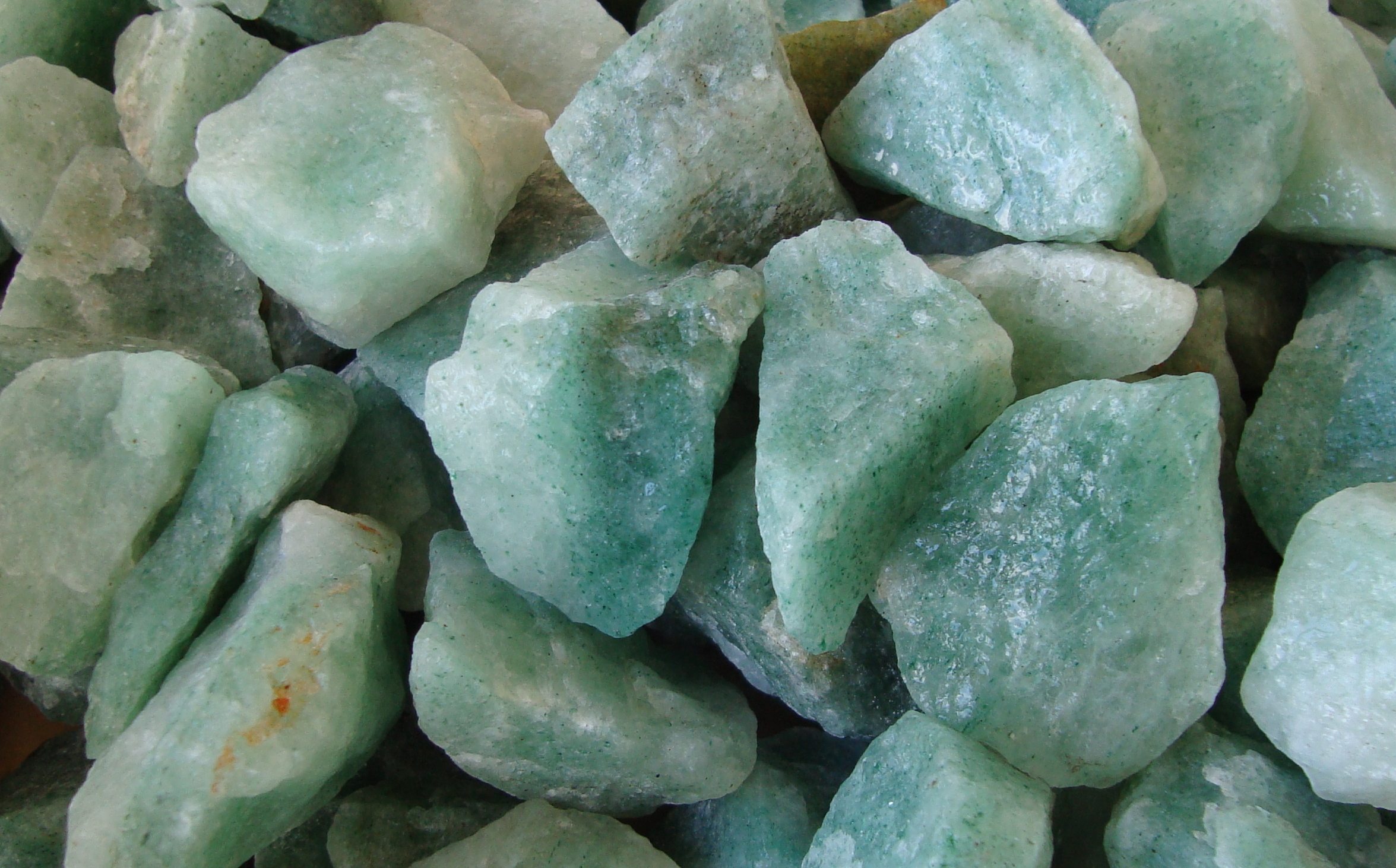 Art. 4006 Grønn avaenturinkvarts.Farge skimrende , lys til mørk grønn. Størrelse på bitene 750 gr. – 2,4 kg. Pris er oppgitt pr. 100 gram