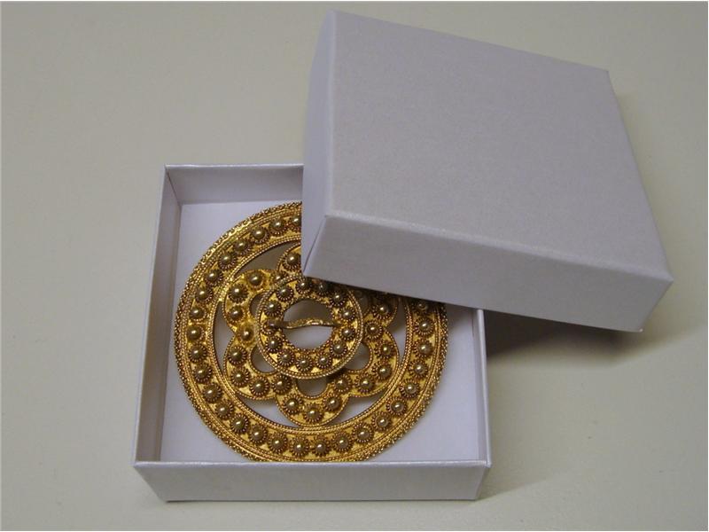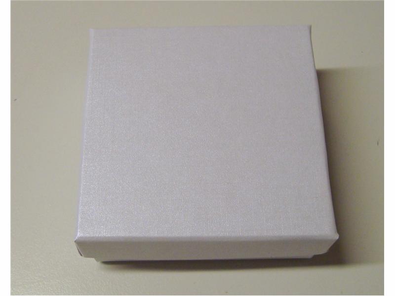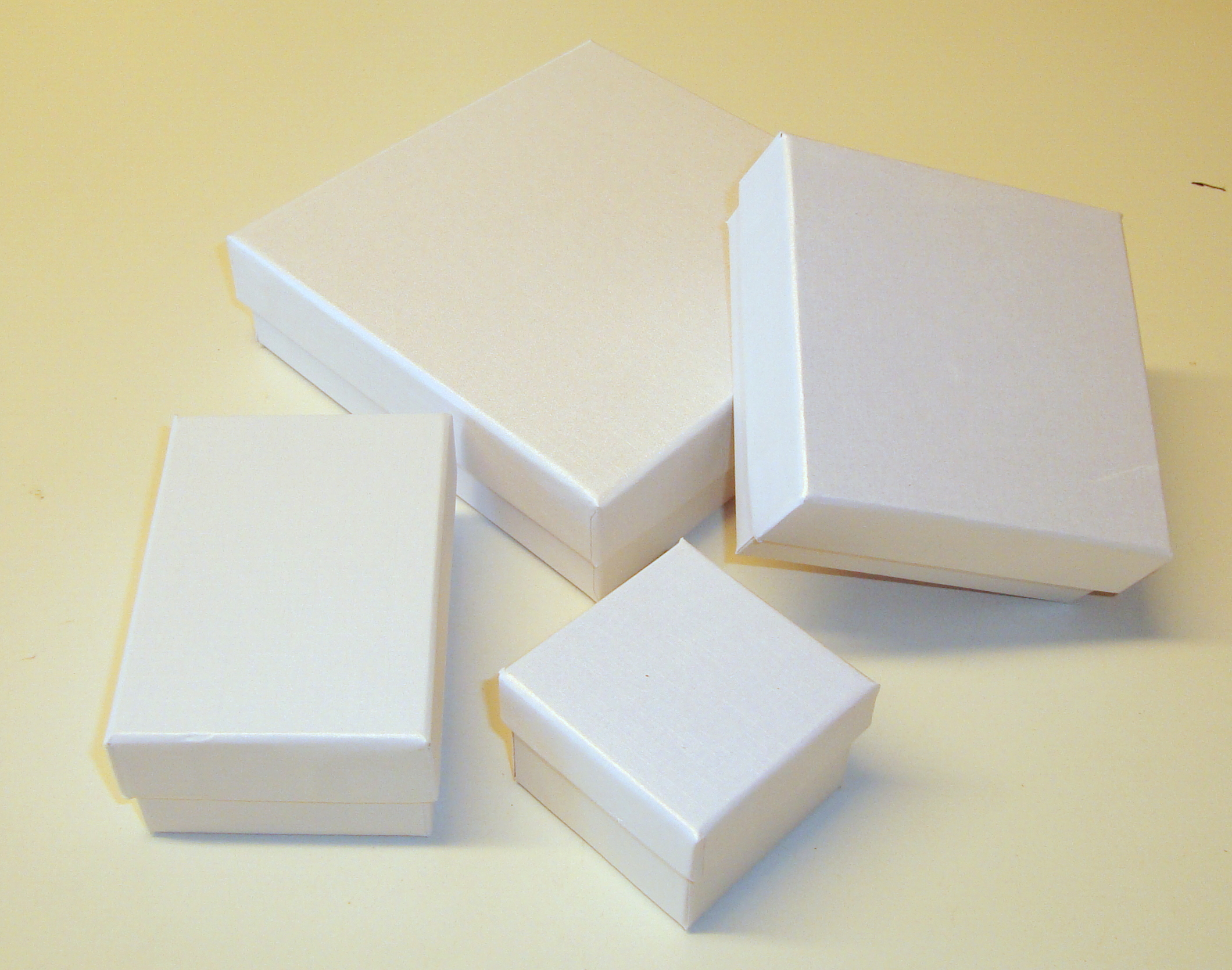Gaveesker i hvit papp. De har inleggsputer med hvit velur topp