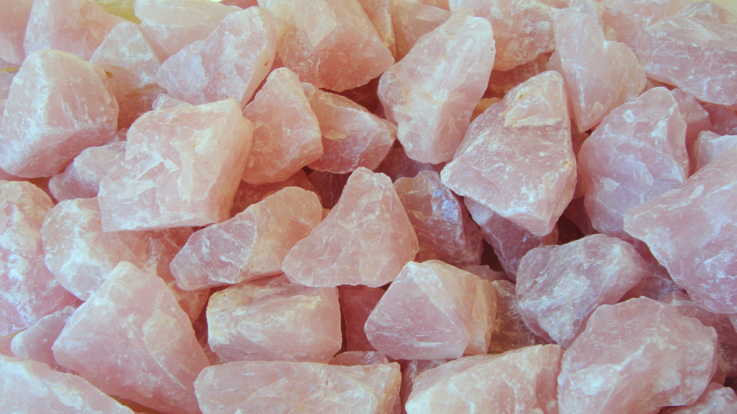 Rosenkvarts. Biter i størrelse 30-100 gram. Pose med 500 gram