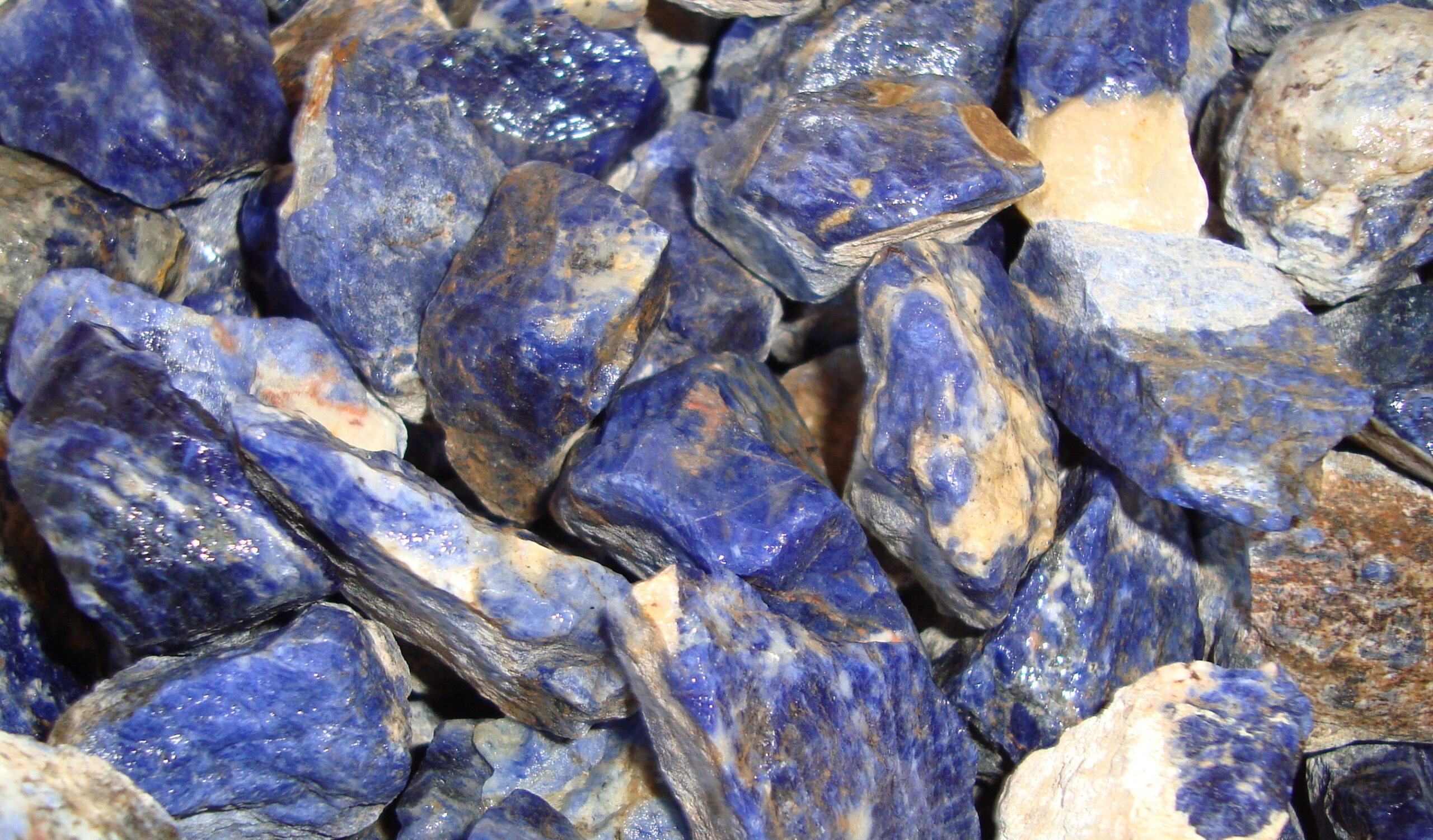 Sodalitt. Biter i størrelse 50-100 gram. Pose med 500 gram.